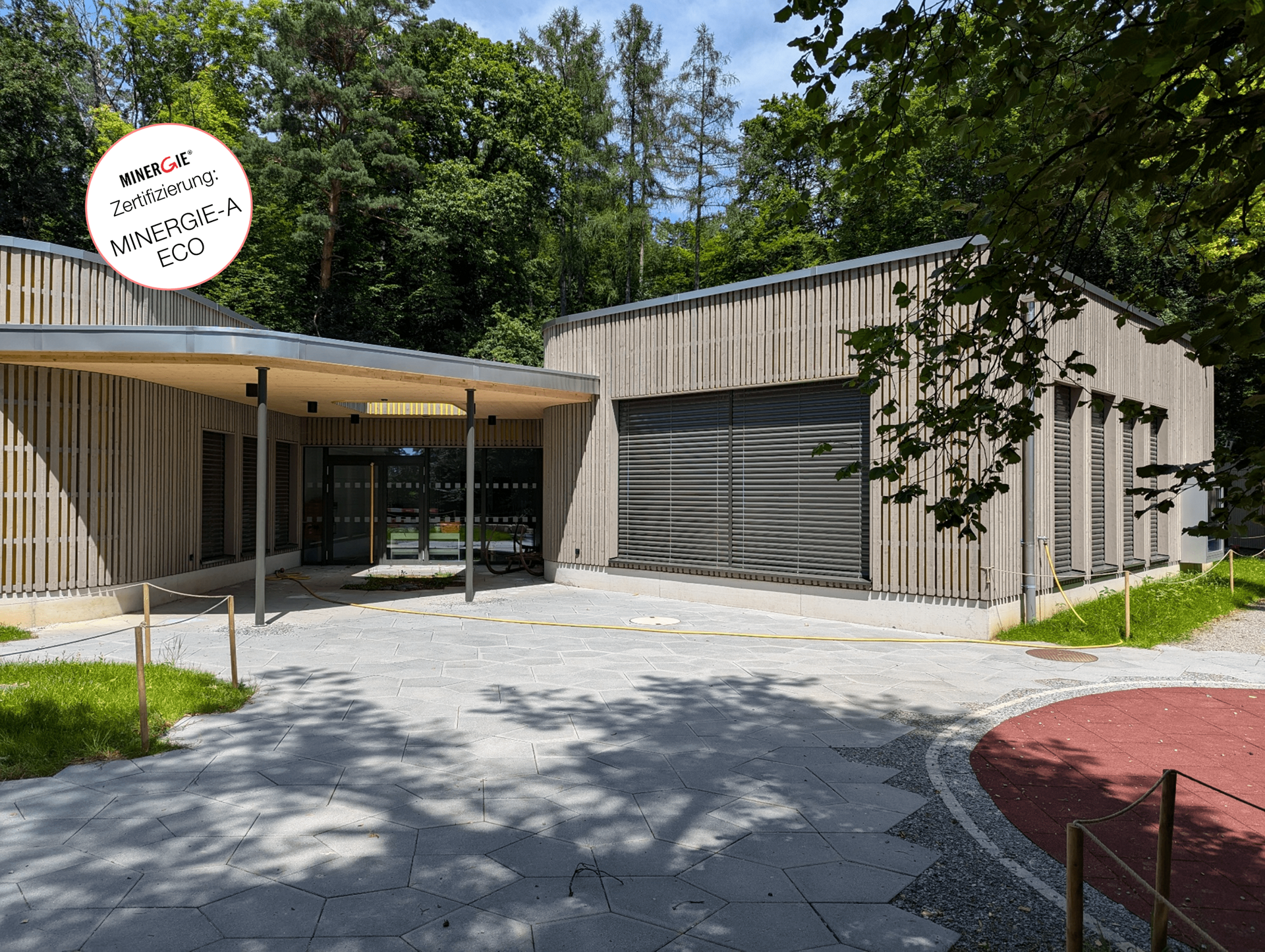 Die Herausforderung für Herrmann Partner AG lag darin, die bauphysikalischen Anforderungen an ein energieeffizientes Gebäude nach Minergie-A-ECO zu gewährleisten und zugleich eine behagliche Atmosphäre für die Kinder zu schaffen. Entscheidend dafür war die enge Zusammenarbeit mit dem Architekten und der Zertifizierungsstelle.